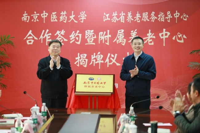 1月6日,南京中医药大学与省养老服务指导中心合作签约暨附属养老中心揭牌仪式在宁举行。这是全国首个高校附属养老中心,是我省在养老服务人才培养方面的又一创新之举。省民政厅党组书记、厅长谢晓军、南京中医药大学党委书记乔学斌出席活动,省民政厅副厅长邱泽森、南京中医药大学副校长胡孔法出席并讲话,省民政厅副厅长林莉主持活动。