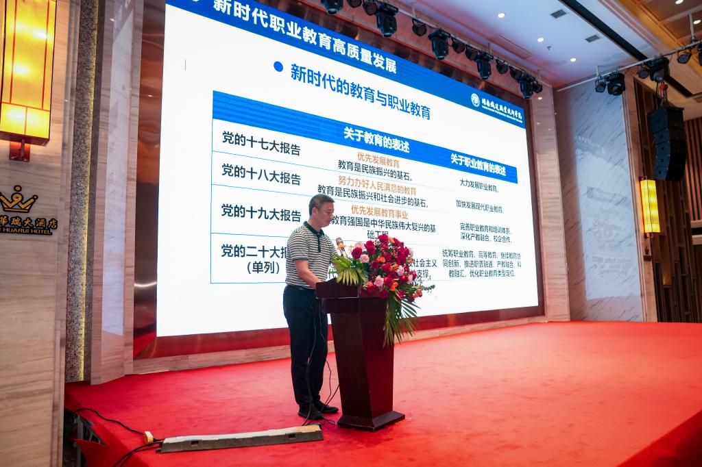 上午的论坛中,湖南铁道职业技术学院产教融合处处长邝允新以《国家轨道交通产教融合共同体建设路径与思考》为主题,从新时代职业教育高质量发展、共同体建设的理解和路径,学校推进产教融合的探索和实践以及学校在共同体建设中的思考和举措四个方面进行分享。他指出,职业教育发展的趋势使共同体建设的重要性和必要性更加突出,通过共同体的建设,可以有效推动职业院校、科研单位和行业企业形成命运共同体,实现校际和校企之间多层面、多维度、全方位、深层次地协作互动,从而达到行业优质资源共享、优势互补、协调发展,有力推动职业教育高质量建设,同时在共同体建设局面下可以更好的发挥学校的示范引领作用,为行业高质量发展输送更多更好的高素质技术技能人才。
