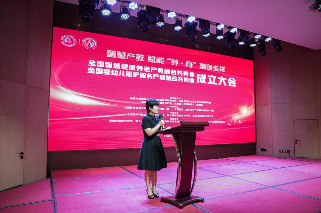 8月6日,“共同体”成立大会在湖南长沙隆重举行,来自全国各地的政府、行业、企业、学校116家单位、共计243名代表参加了会议。教育部任占营处长、国家卫生健康委刘金伟处长、湖南省教育厅副厅长王仁祥、湖南省民政厅副厅长游劲民、湖南省妇联主席卢妹香、国投健康产业投资有限公司副总经理陈冰等领导出席大会。会议由长沙民政职业技术学院党委副书记、校长陈静彬主持。
